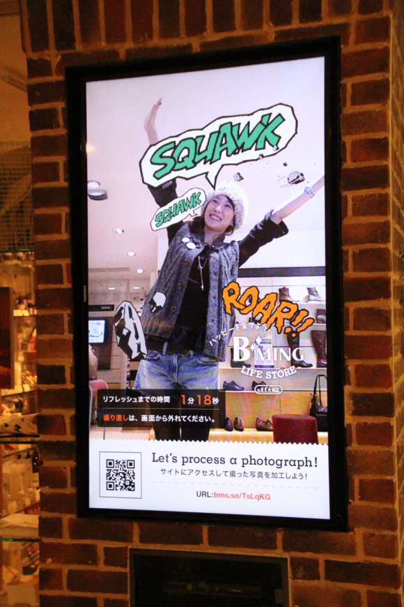 これならパパやママが洋服に夢中になっている時、チビッコ達も飽きることがなさそうです。ちなみに技術的な仕組みはというと、使われているのはXboxのキネクトとMacのみ。実にシンプルな構成です。なお、吉祥寺のB:MINGだけではなく、他店舗のB:MINGでも同様のシステムが設置されているのだとか。