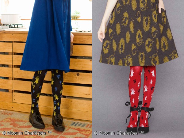 ▼「ムーミンと仲間たち シルエットモチーフの総柄タイツ」はブラックとレッドの2色