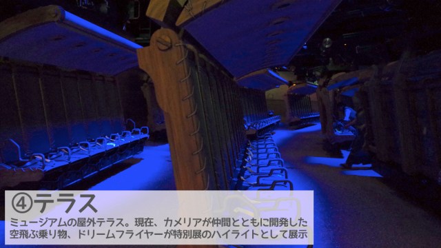 このミュージアムは、空を飛ぶという人類の夢や研究成果の常設展と、飛行研究に情熱を注いできた女性カメリア・ファルコの特別展が開催されている……というストーリーが秘められています。そのカメリア特別展の展示物のひとつが「ソアリン:ファンタスティック・フライト」なのです。