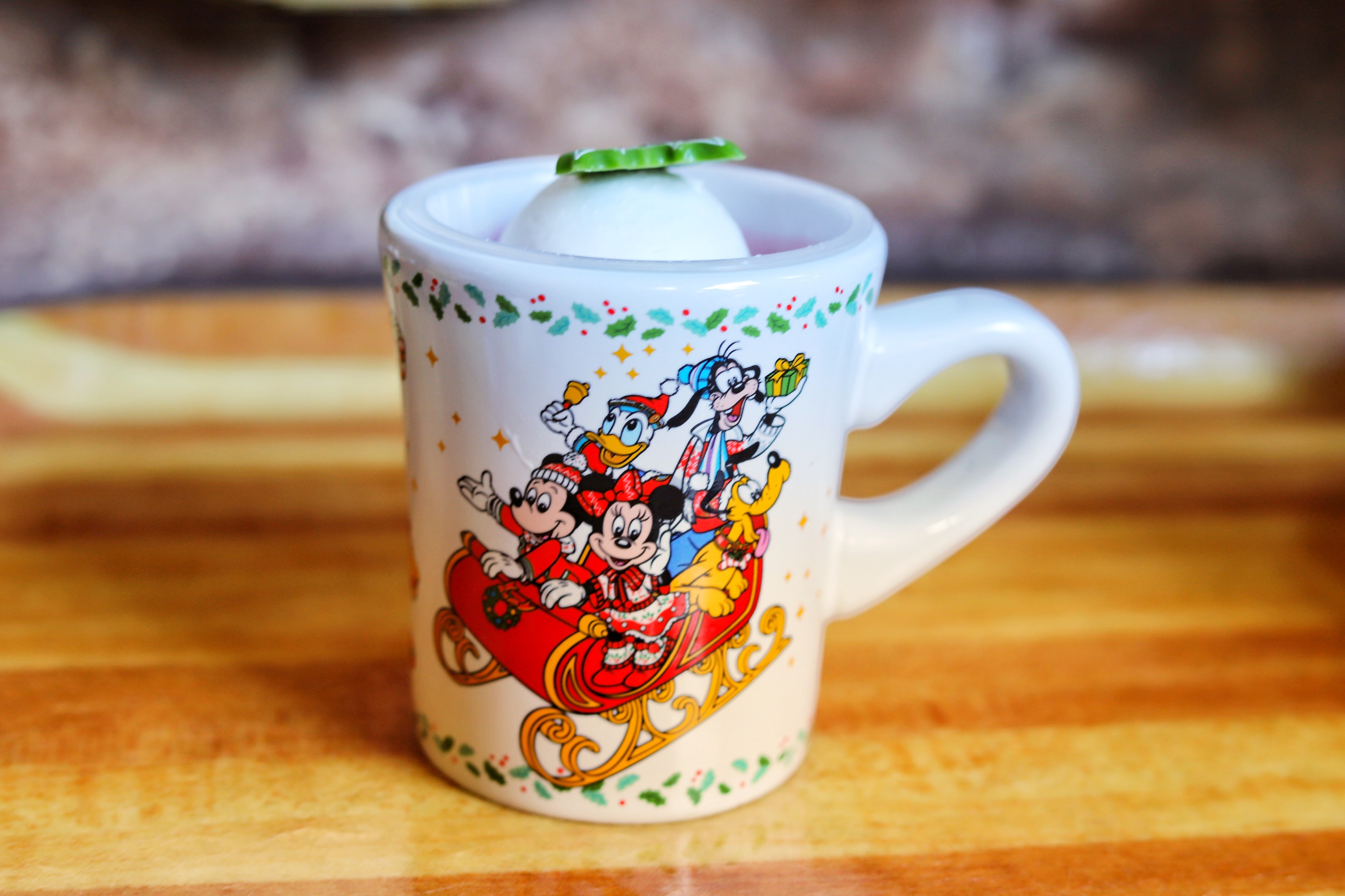 ミッキーたちがソリに乗って楽しげに遊んでいる絵柄があしらわれたスーベニアカップ付き。キャラクターのちょっとレトロな雰囲気がクリスマスっぽくてキュンときちゃいますよ〜♡
