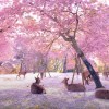 心洗われる奈良公園の様子が桃源郷のような美しさ…開の桜の中で鹿たちがくつろいでいます