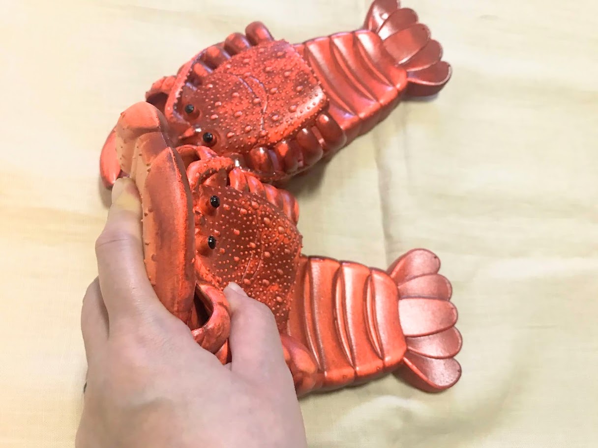 サンダルは裏返しになっていたのですが、裏側の脚やお腹まで忠実にロブスターを再現していたため、一瞬ビビってしまいました。