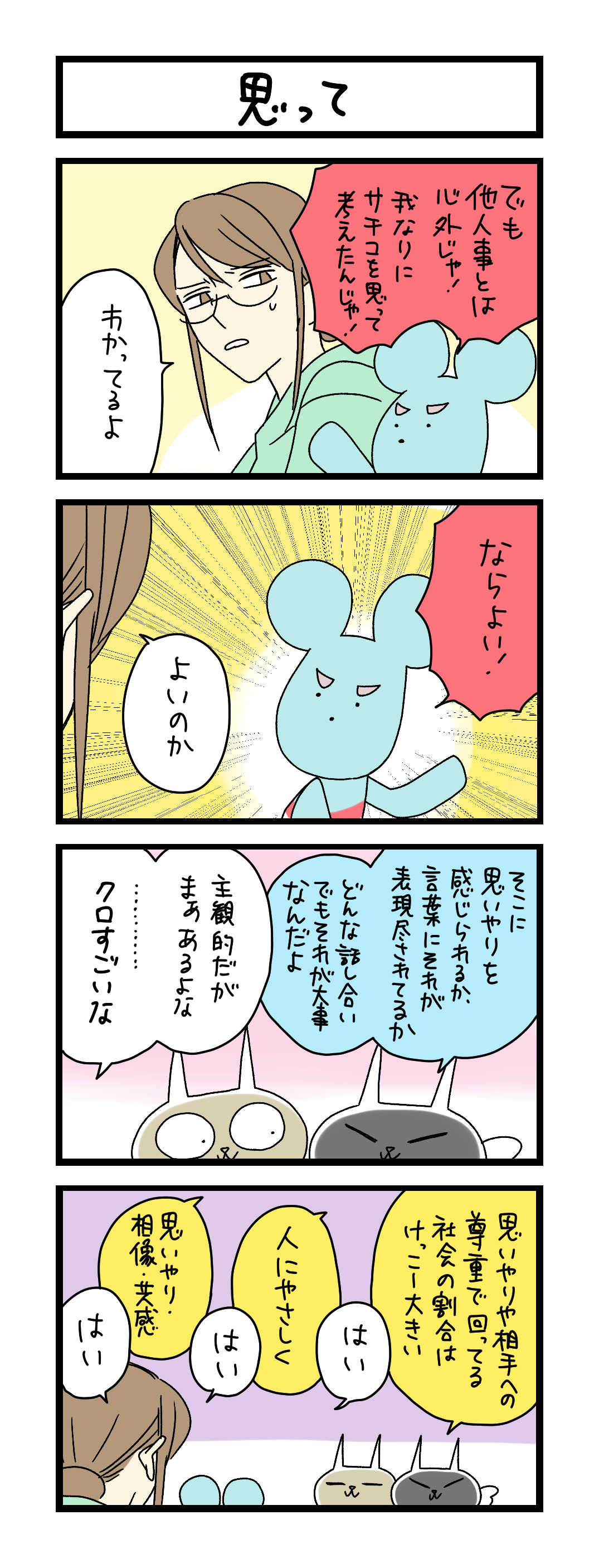 4コマ漫画『サチコと神ねこ様』の時間です。