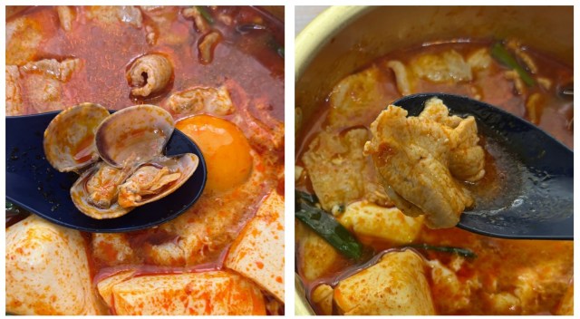 まずはお豆腐をすくって口に入れてみると……わあぁぁ、これこれ!!! ぷるんとした淡白な豆腐に絡む濃厚なチゲの辛さとコク。スンドゥブのおいしさがストレートに伝わってきます。