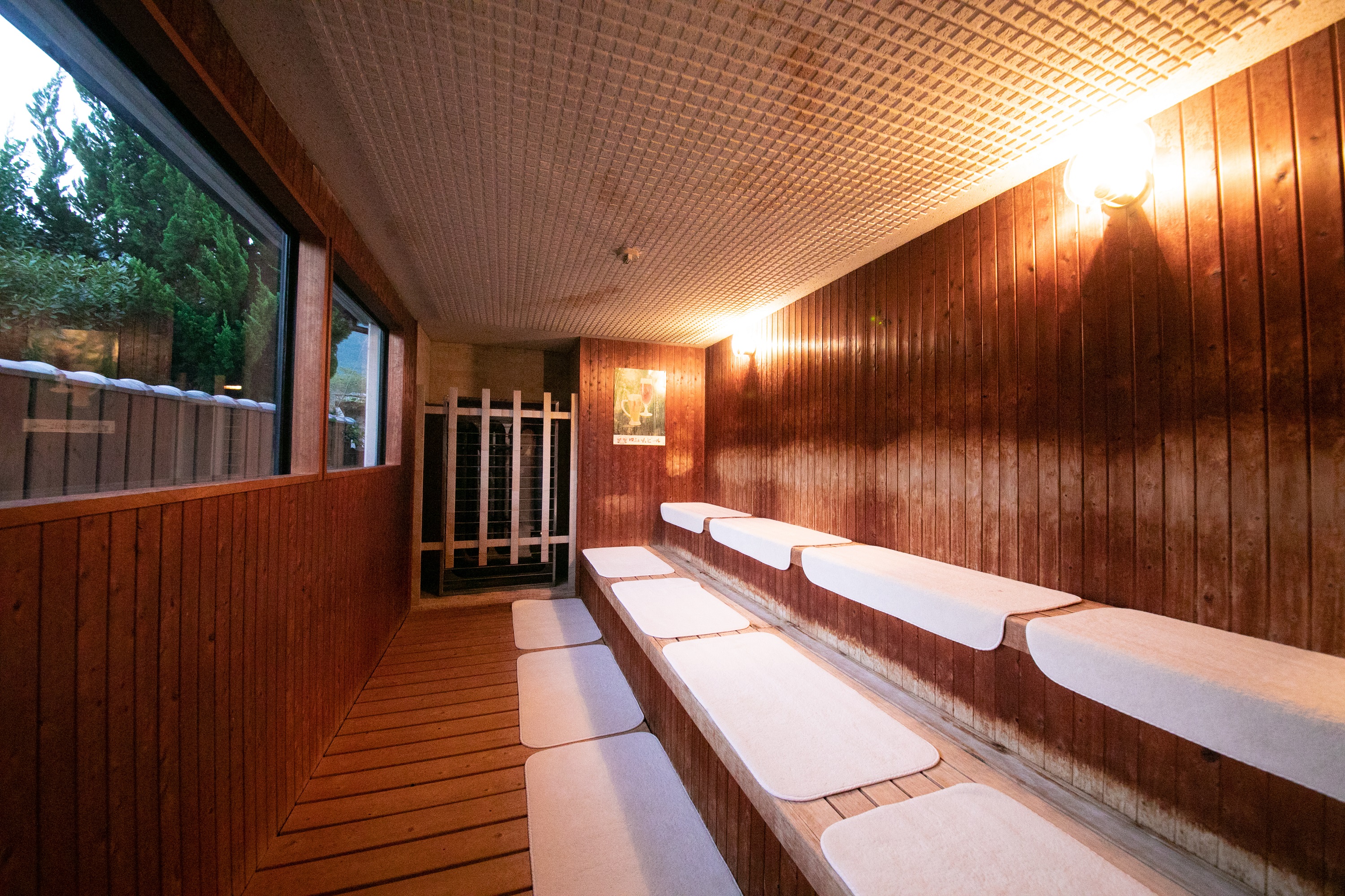 由布岳の美しい緑を堪能できる「杜のサウナ」を設置。由布院自慢の天然湧水風呂×外気浴で絶景を見ながらクールダウンできます。サウナは状況により男湯・女湯が変更になるので事前に確認しましょう。