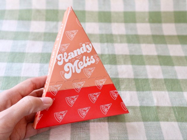 見た瞬間、画期的だわ~~~とうれしくなっちゃったのが、ピザハットの「ハンディメルツ」。テーブルいっぱいに広げなくても、片手でサクッとピザが食べられるというのです。