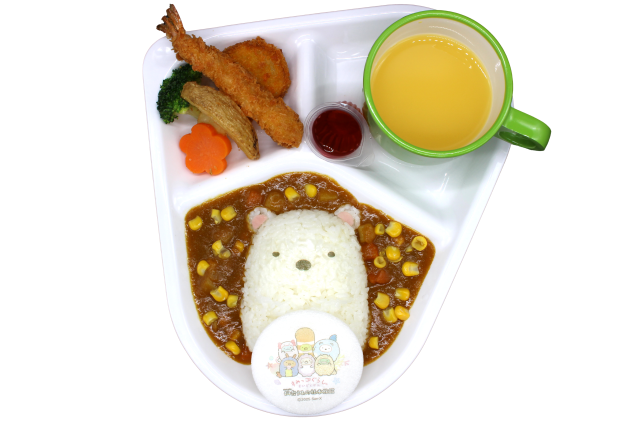 「すみっコのなかよしオムハヤシプレート」(1600円)は、とろ~り卵のオムハヤシにエビフライ&ヒレカツをトッピング♪