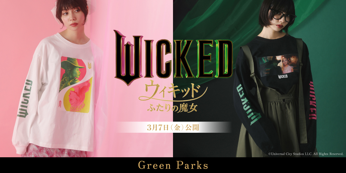 人気のセレクトショップに、作品を象徴するピンク・グリーン・ブラックを基調にしたアイテム全10型をラインナップしたコラボコレクションを展開。ウィキッドの世界をしっかり反映しつつも、スウェットやロンTなど大人が普段使いしやすいアイテムがそろっています♪