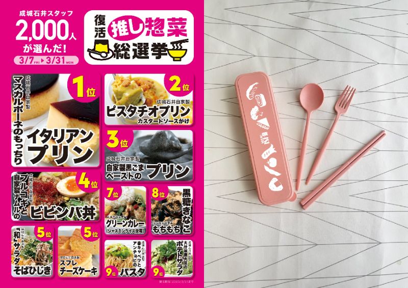 期間限定で人気惣菜&デザートがよみがえる「成城石井スタッフ2000人が選んだ! 復活 “推し惣菜” 総選挙!!」。成城石井史上初となる一大企画です。