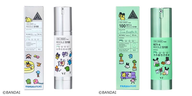 エステ並みのケアが自宅でできると評判のVTリードルショット。今回のコラボでは「リードルショット100」(3520円)と「レチA リードルショット」(2739円)をラインナップ。まめっち、くちぱっち、いぬっちなどおなじみのキャラクターを描いたパッケージが可愛すぎます。