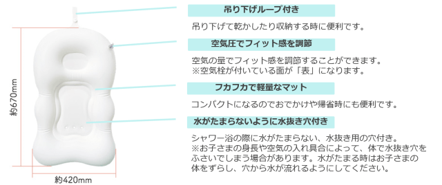 使わない時は空気を抜いて折りたためばコンパクトになるので、帰省時や旅行にも大活躍♪ お風呂以外にもおむつ替えやお着換えのときなど用途にあわせてさまざまなシーンで使えますよ!