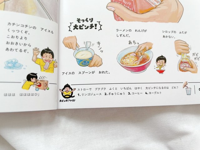 子どもはもちろん(あらゆるピンチを経験済みの)大人もハマっちゃうこと間違いなし。ページの下の「大ピンチ!クイズ」も充実しているので、隅々まで楽しめますよ〜!