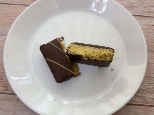 ……これはなんという食感の妙! ふんわり柔らかなチョコに、ピスタチオの風味とカリカリ食感、そこにカダイフのザクザク食感が加わり、大変ユニークな味わいを生み出しています。