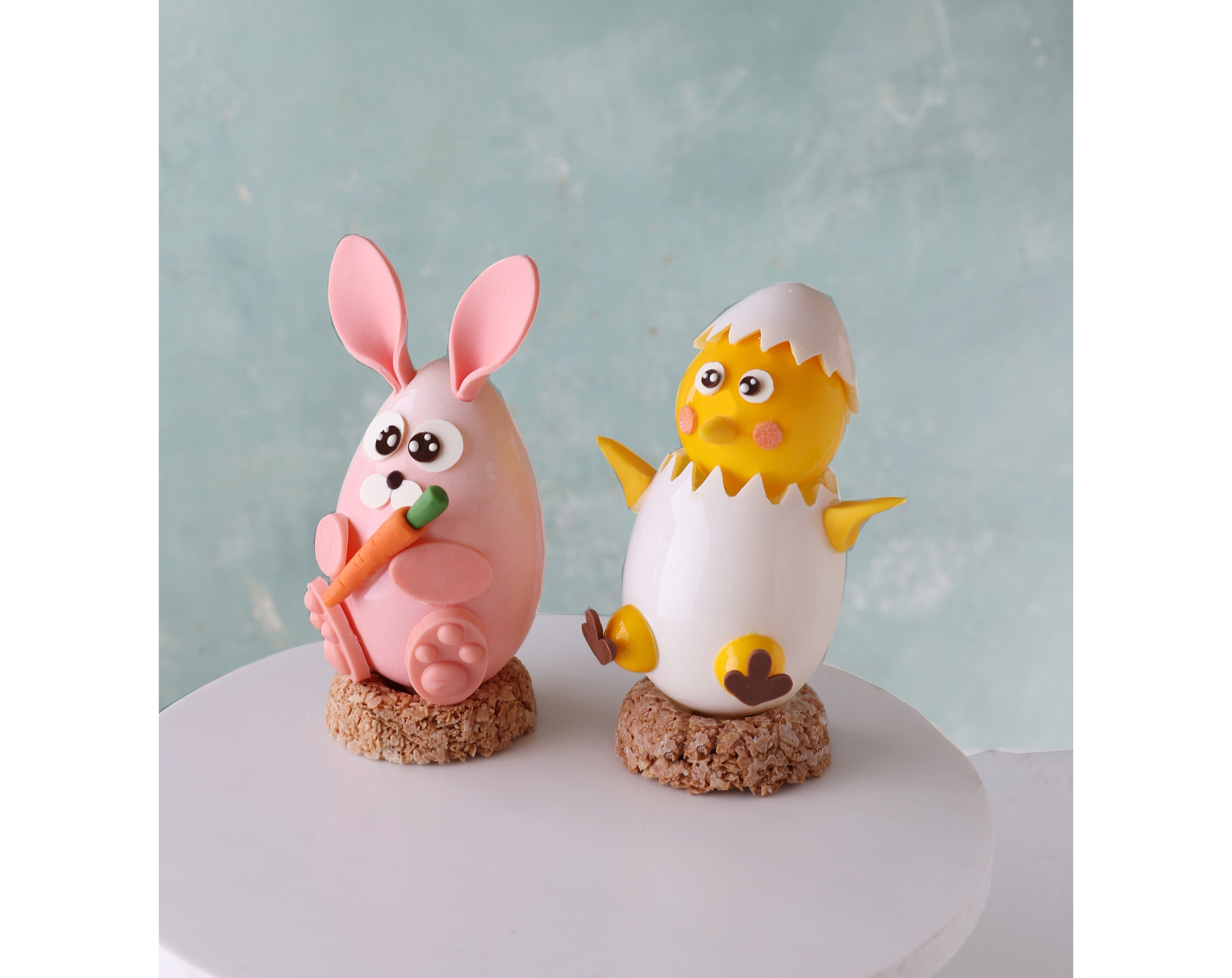 泣く子も黙る名店が手がけるイースター限定ショコラ。モチーフとなっているのは……キュート&ユーモラスな表情を浮かべる「うさぎ」と「ひよこ」!!! 後ろ姿まで完璧に再現(!)されているところに名店のこだわりを感じます。