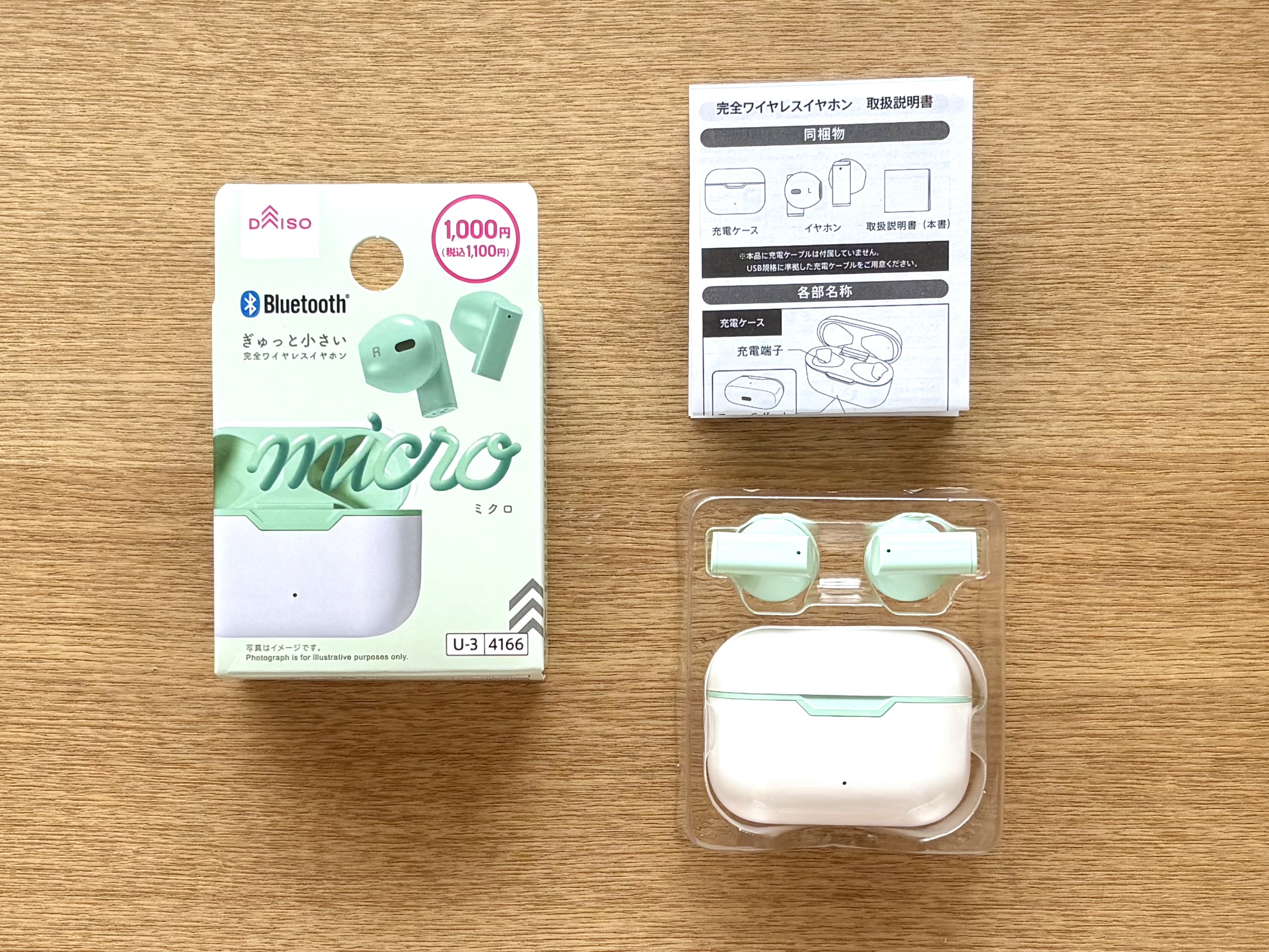 ちなみに、お値段は100円ではなく1000円。この値段でワイヤレスイヤホンが手に入るって、すごいですよねぇ。