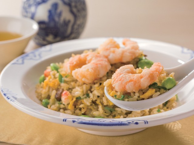 白胡椒が決め手という台湾の伝統的な枝豆チャーハンに、卵白で下味をつけたぷりっぷりの海老をトッピング! 海老の旨味と枝豆の食感にヤミツキになること間違いなしです。
