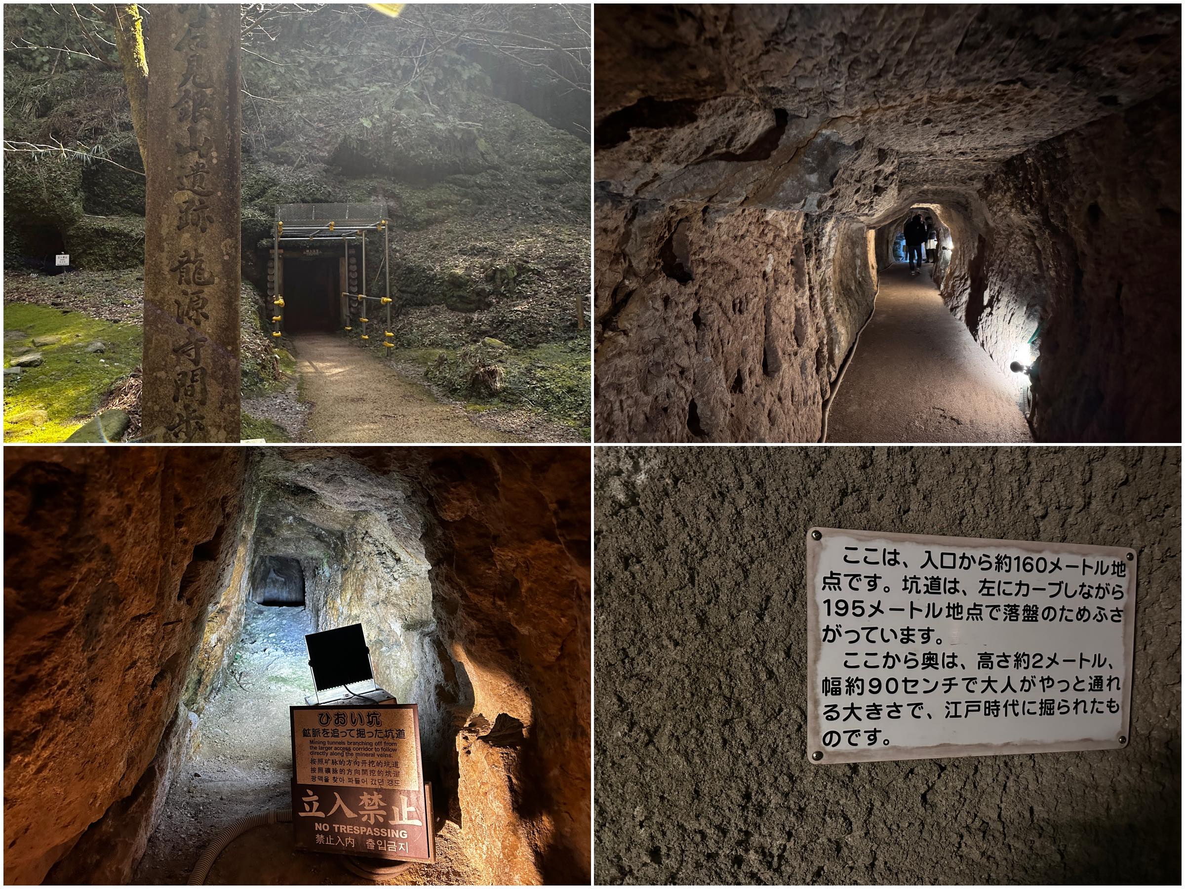 まずは、石見銀山で唯一通年見学できる「龍源寺間歩(りゅうげんじまぶ)」へ。当時の採掘技術がわかる貴重な遺構で、江戸時代中期に開発されたこの坑道にはノミで岩を掘った跡や水を抜くための竪坑などがそのまま残っています。