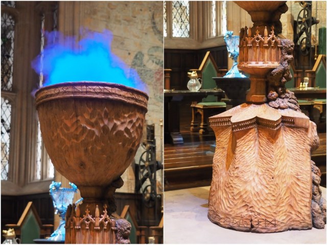 青く神秘的な炎が上がる木彫りのゴブレットは、それだけで存在感抜群。「なんだか今年はすごいことが始まるぞ……」というホグワーツ生の気分に浸れます。