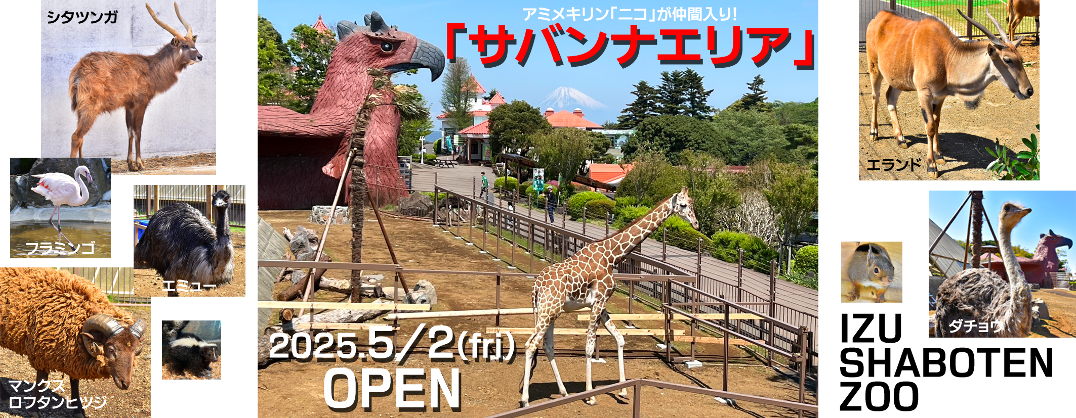 お出かけ先を探しているのなら「伊豆シャボテン動物公園」はいかがでしょうか。新エリア「サバンナエリア」がオープンしたうえに、動物たちがベビーラッシュを迎えているんですって~!