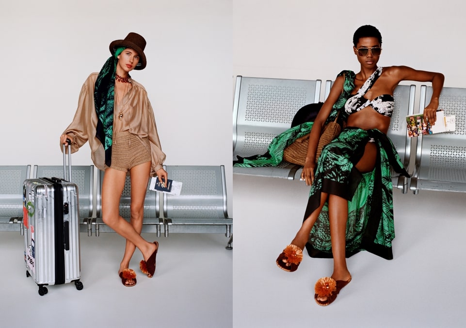 ワンショルダービキニや、ボタニカル柄のワンピスイムウェア、刺繍をあしらったガーリーなビキニなどに加えて、水着とあわせてコーディネートしたくなるサンダルやスカーフもありますよ~!