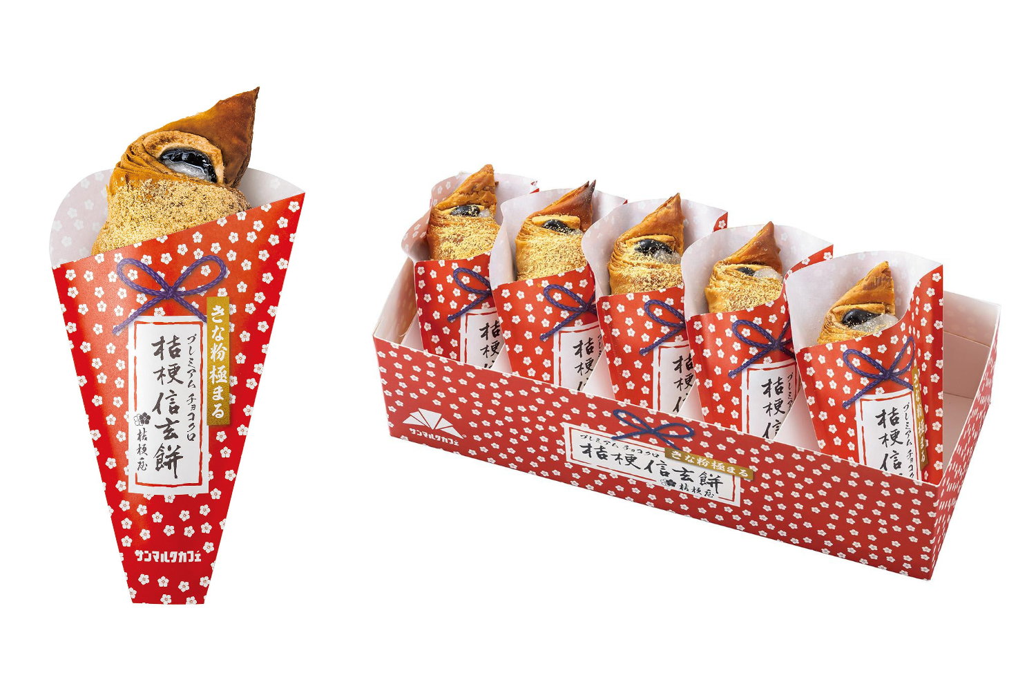 昨年2024年に初めてコラボしたというサンマルクカフェ×桔梗信玄餅。再タッグとなる今回の目玉は「プレミアムチョコクロ 桔梗信玄餅」(390円 / プレミアムBOX 5個入 1750円)です!