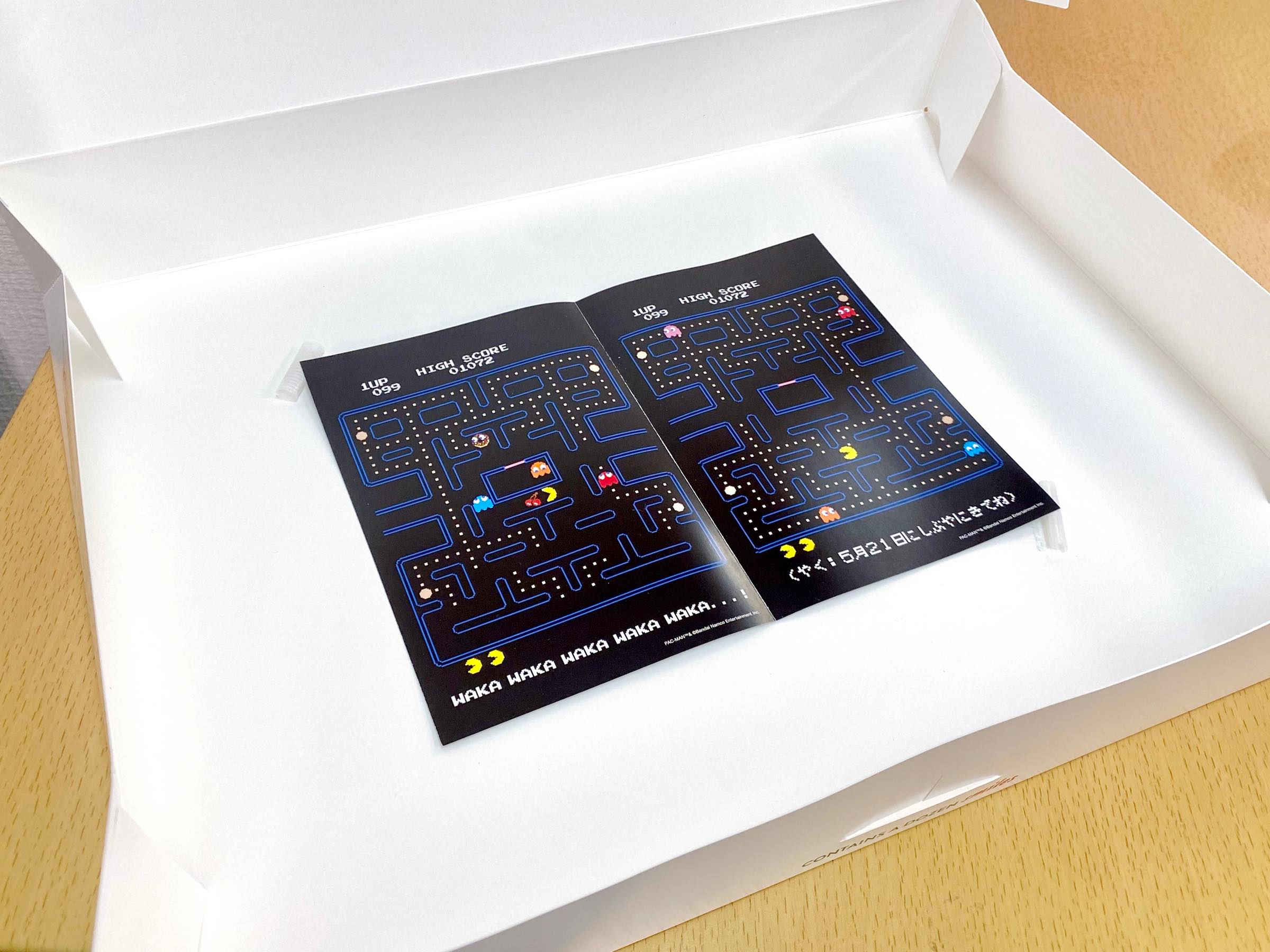 ドーナツちゃうかった……と思いながらその紙を見てみると、パックマンのゲーム画面のようなイラストの右下に「5月21日にしぶやにきてね」との文字が。おお、これはパックマンからの招待状ですか!?