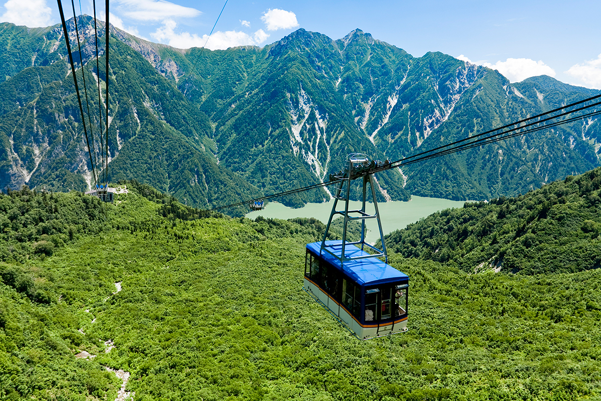雄大な自然に囲まれながら空中散歩が楽しめる “動く展望台” 。支柱を立てずワイヤーのみで客車を運ぶ “ワンスパンロープウェイ” としては日本最長といわれているそうです。