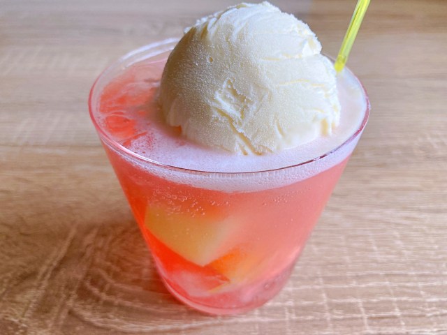 甘さはミニマムなトロピカルティーにシュワっとした炭酸はベストマッチ。バニラアイスが溶けていくにつれてまろやかさがどんどんアップ。