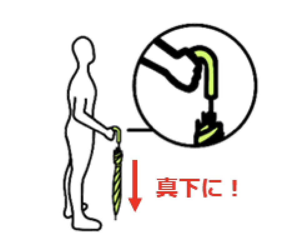 ・傘の先端が真下に向くように持つ