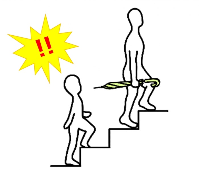 ・階段を上っているときに自分の傘が後ろの人に当たってしまった