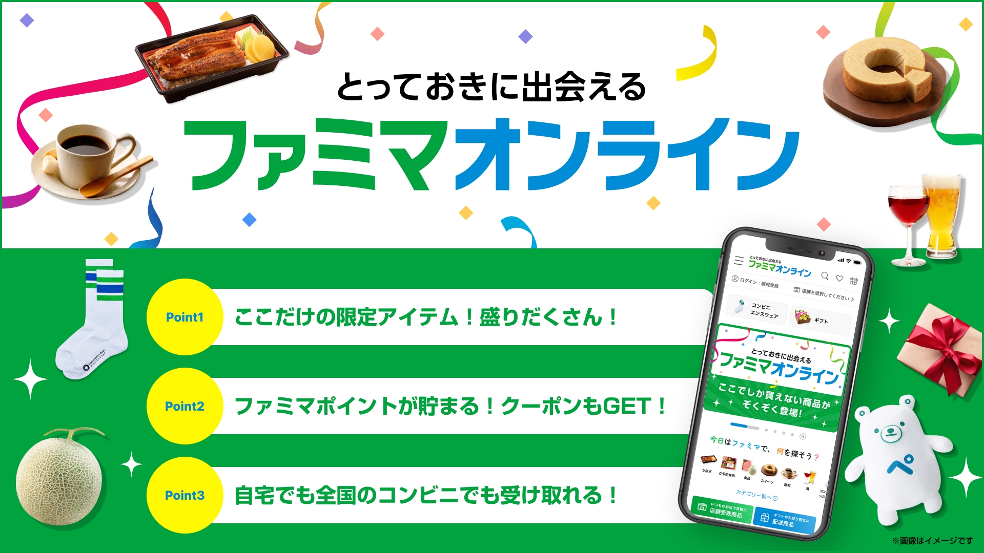 「とっておきに出会えるもうひとつのファミマ」をコンセプトにしているファミマオンライン。話題になったコンビニエンスウェアをはじめ、限定商品が買えるオンラインコンビニとしてサービスを展開しています。