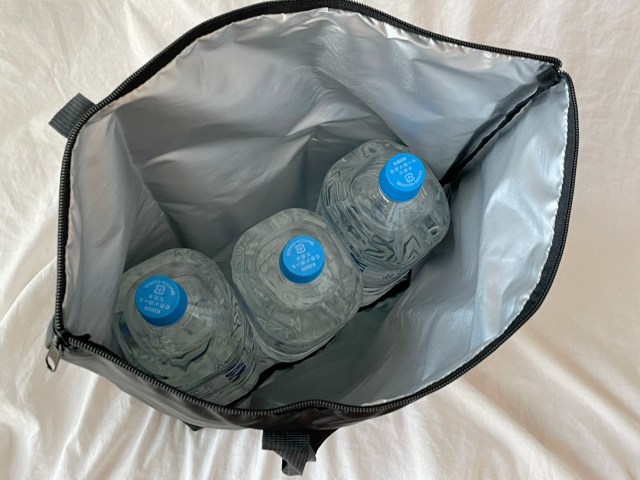バッグの内側は保冷機能付き&汚れを拭きやすそうなツルッとした素材感。ファスナー付きでしっかり保冷できますね。