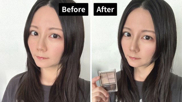 使用前後の顔を比べてみると、さり気ないのに使用後の方が明らかにメリハリのある印象に。やっぱりシェーディングとハイライトの効果はすごいから、毎日のメイクに取り入れなきゃ損だと改めて実感しました。