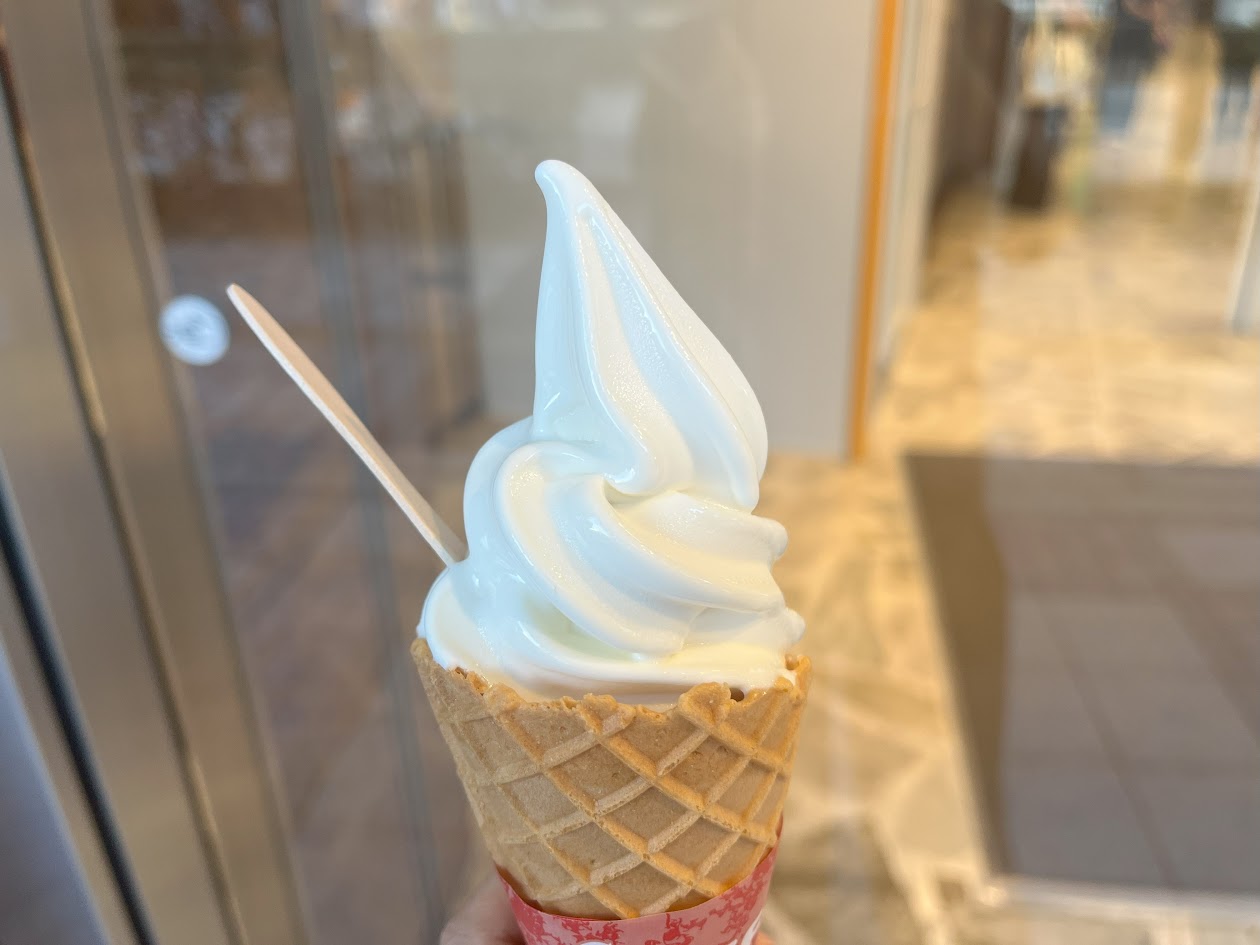 なお、購入するのに並ぶことはありませんでしたが、話題の商品ゆえにお店の周囲はソフトクリームを食べている人だらけでした(笑)。私もそのひとりだけれど、これ目当てで交通会館に来ている人も多いのかも。