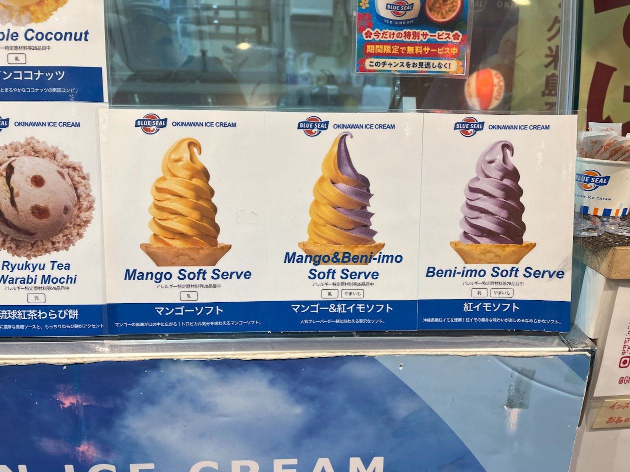 こちらのソフトクリームは沖縄といえば!なブルーシール。お店の奥にあるパーラーにて食券で購入するシステムです。