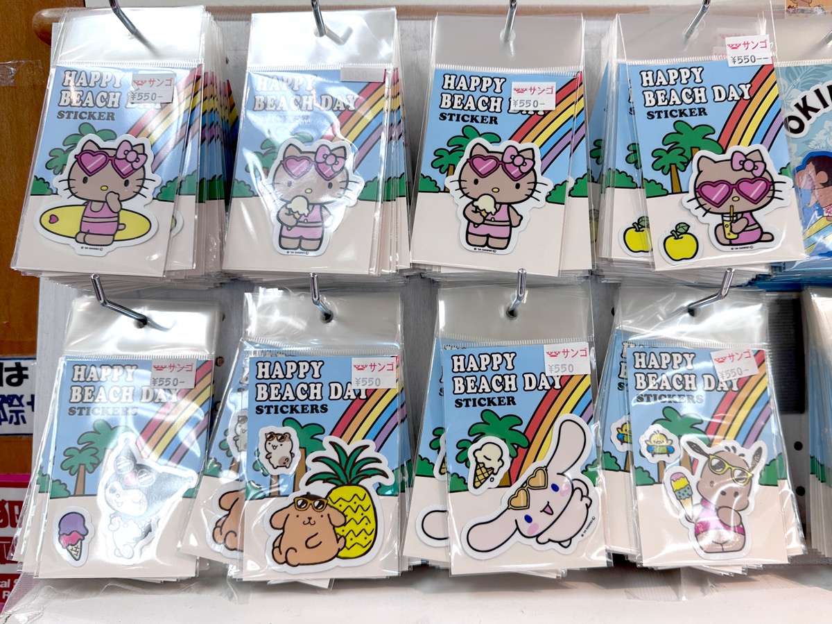 おみやげ売り場を歩き回り、ようやく日焼けキティちゃん見つけたのは「国際サンゴ」というお店。こんがりいい色に仕上がったサンリオキャラクターたちのステッカーが並んでいました。