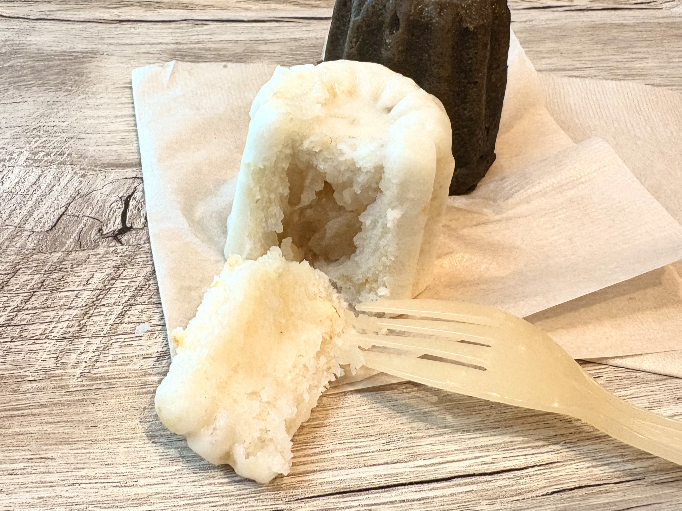 お次は、白い生地で見た目も可愛らしいゆずのコヌレをパクリ。こちらはほうじ茶のコヌレより少し冷めてしまったのですが、生地のモッチリとした食感が増した気がします。
