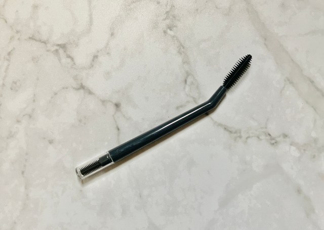 両端にブラシがついているスリムな「まつ毛用ブラシ」。スクリューブラシはクイッと曲がっています。