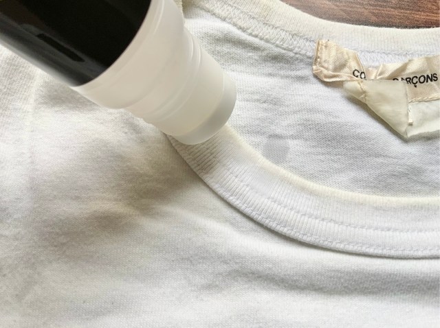 それでは、実家に眠っている間に黄ばんでしまった白Tシャツに使ってみましょう。お気に入りのTシャツだから、落ちてくれますように……!