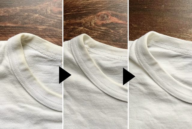 先日、実家に置いていたお気に入りの白いTシャツを送ってもらって4年ぶりの再会をしたのですが……襟元がものすごく黄ばんでいて大ショック!