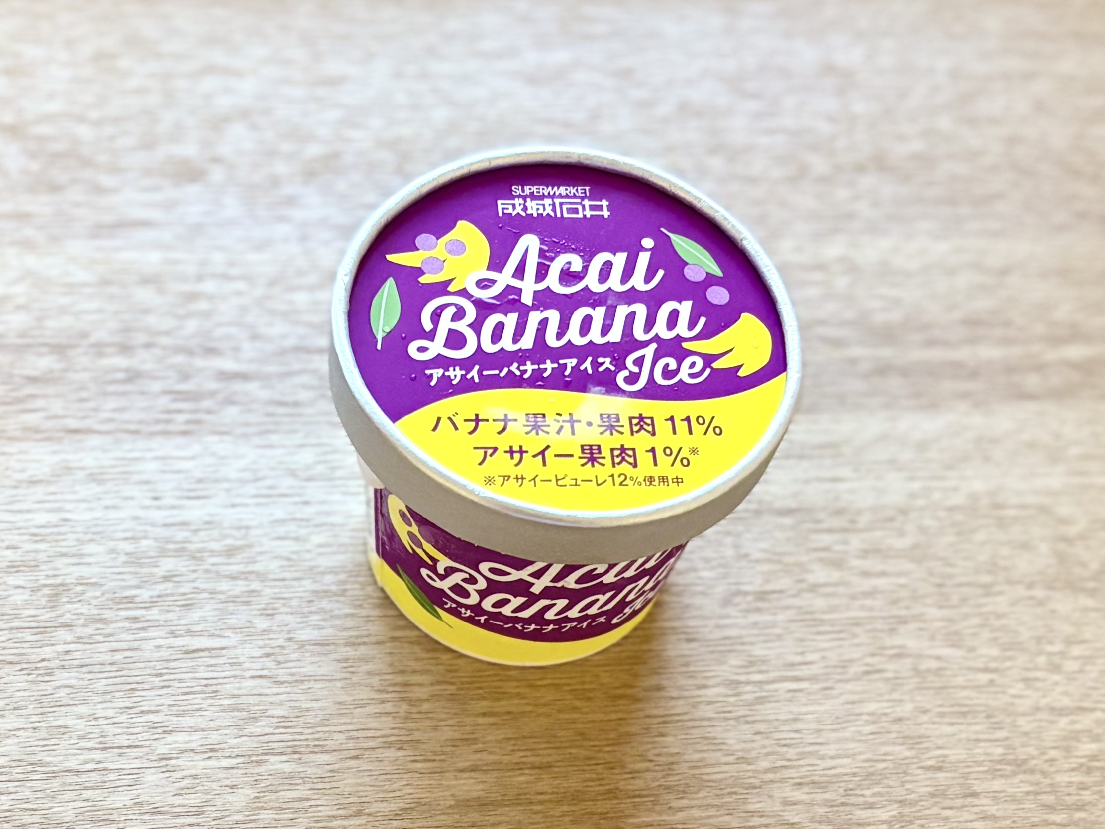 なんとも贅沢な食べ心地だなぁと思ったら、アイス容器のフタに「バナナ果汁・果肉11%、アサイー果肉1%」と書かれていました。やっぱりどちらも果肉入り! そりゃ、アサイーの爽やかさもバナナのまろやかさも存分に味わえるわけです。