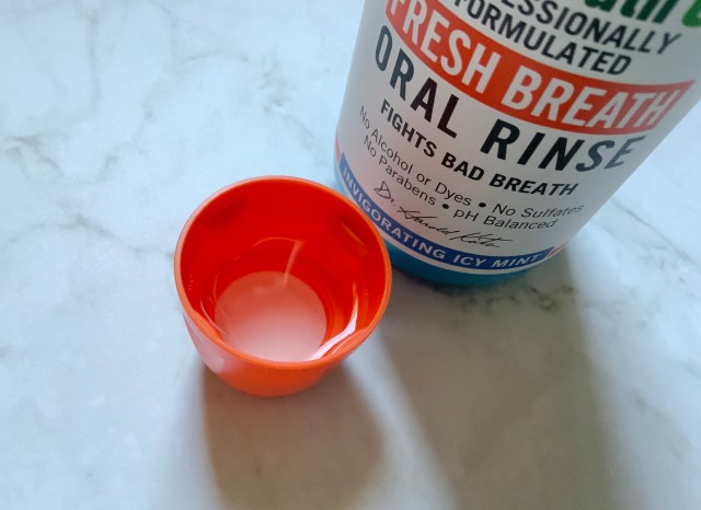 液体の色は無色透明。ミントの香りはしますが、口に含むと本当にマウスウォッシュなのか疑ってしまうほどマイルドでびっくりしてしまいました。