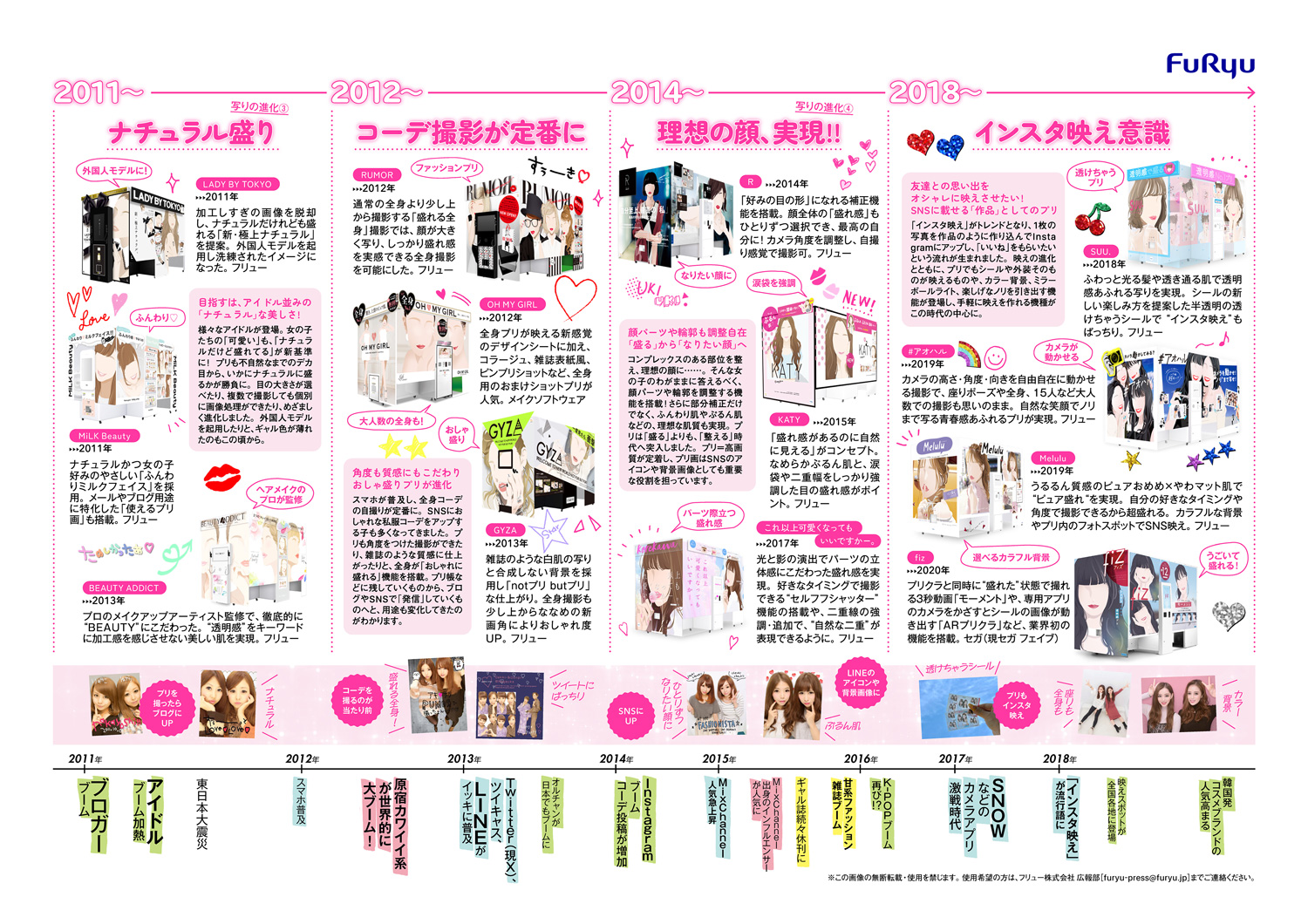 こうしてみると、プリ機の歴史は平成史であり、ティーンの歴史。一緒に年を重ねてきた世代としては感慨深いものがありますなぁ……!! もっと詳しく知りたい人はフリュー特設サイトからチェックしてみてくださいね。