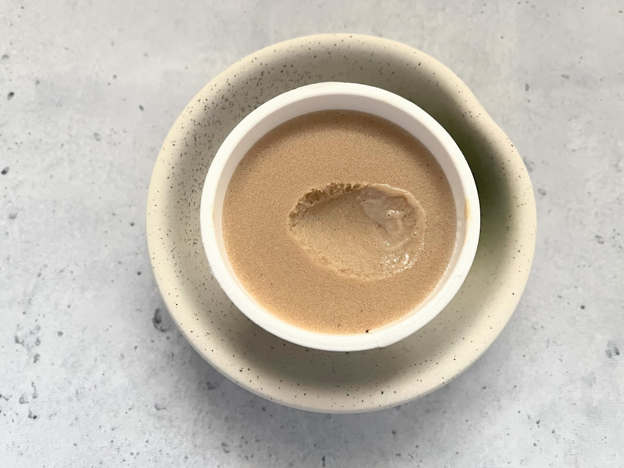 キャラメルのコクとヘーゼルナッツの香ばしいかおりがたまらん。食欲が加速するにおいで甘みの塩梅も絶妙。「もうひとくち」が止まらない、やみつきになる味わい。