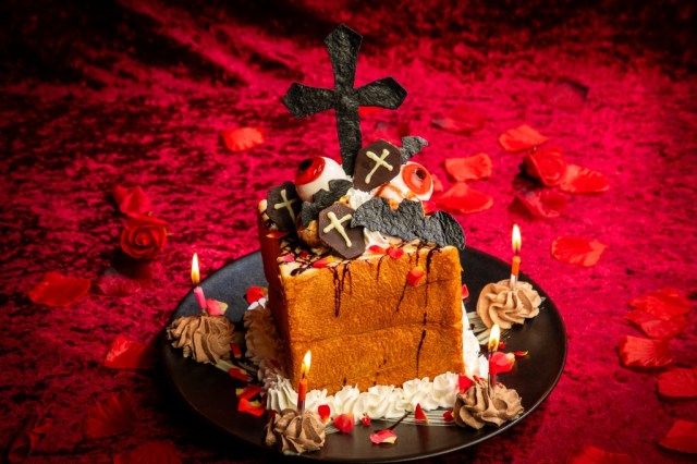 厚切りトーストパンの上に築かれた墓標には魔物たちがうごめき、炎揺らめく蝋燭もあいまって、さながら魔法陣の様相を呈しています。
