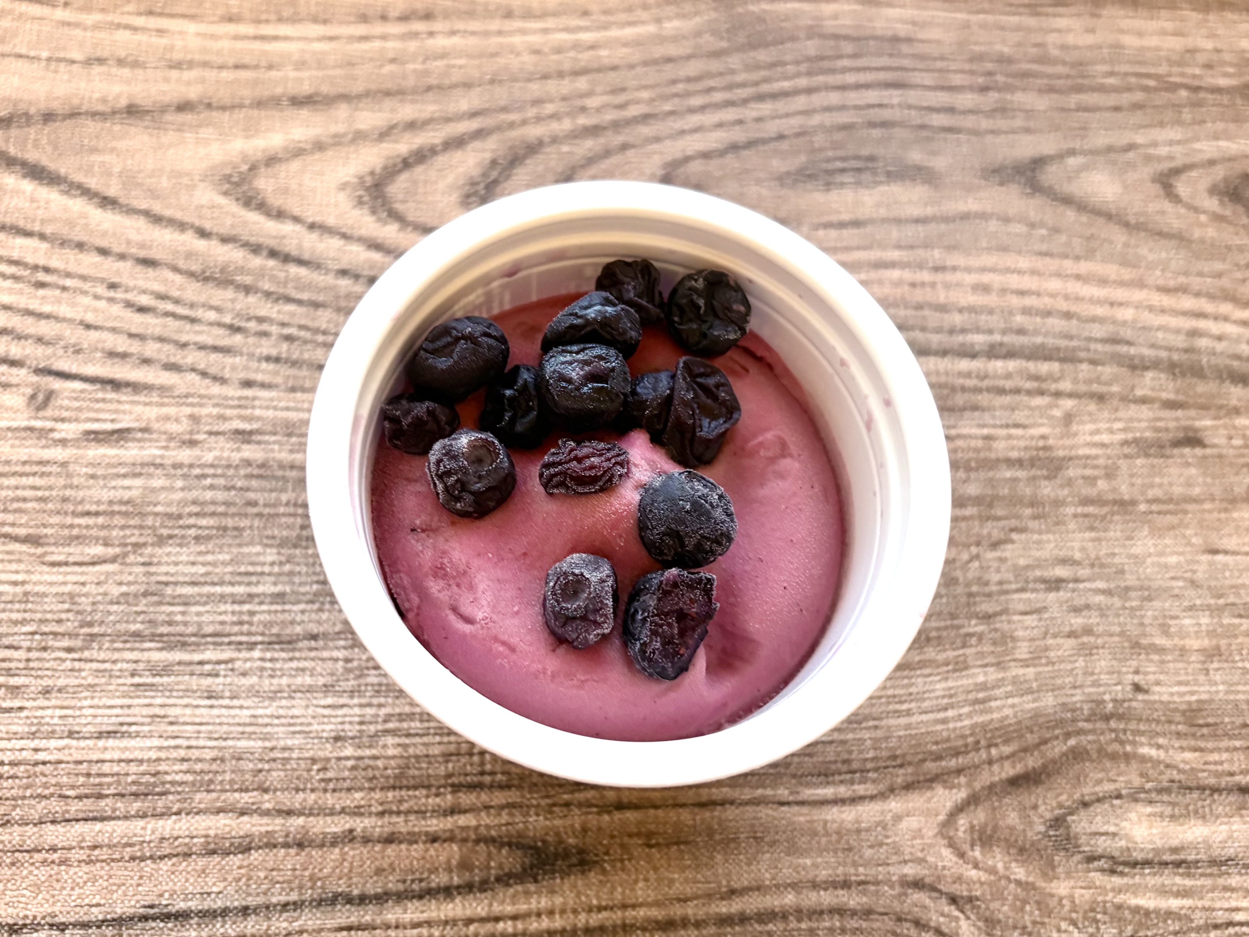 トッピングがチョコパフの「クリーミーヨーグルトボール」に比べると、ブルーベリーとの組み合わせの「アサイーヨーグルトボール」は、味の想像がつきやすいですよね。