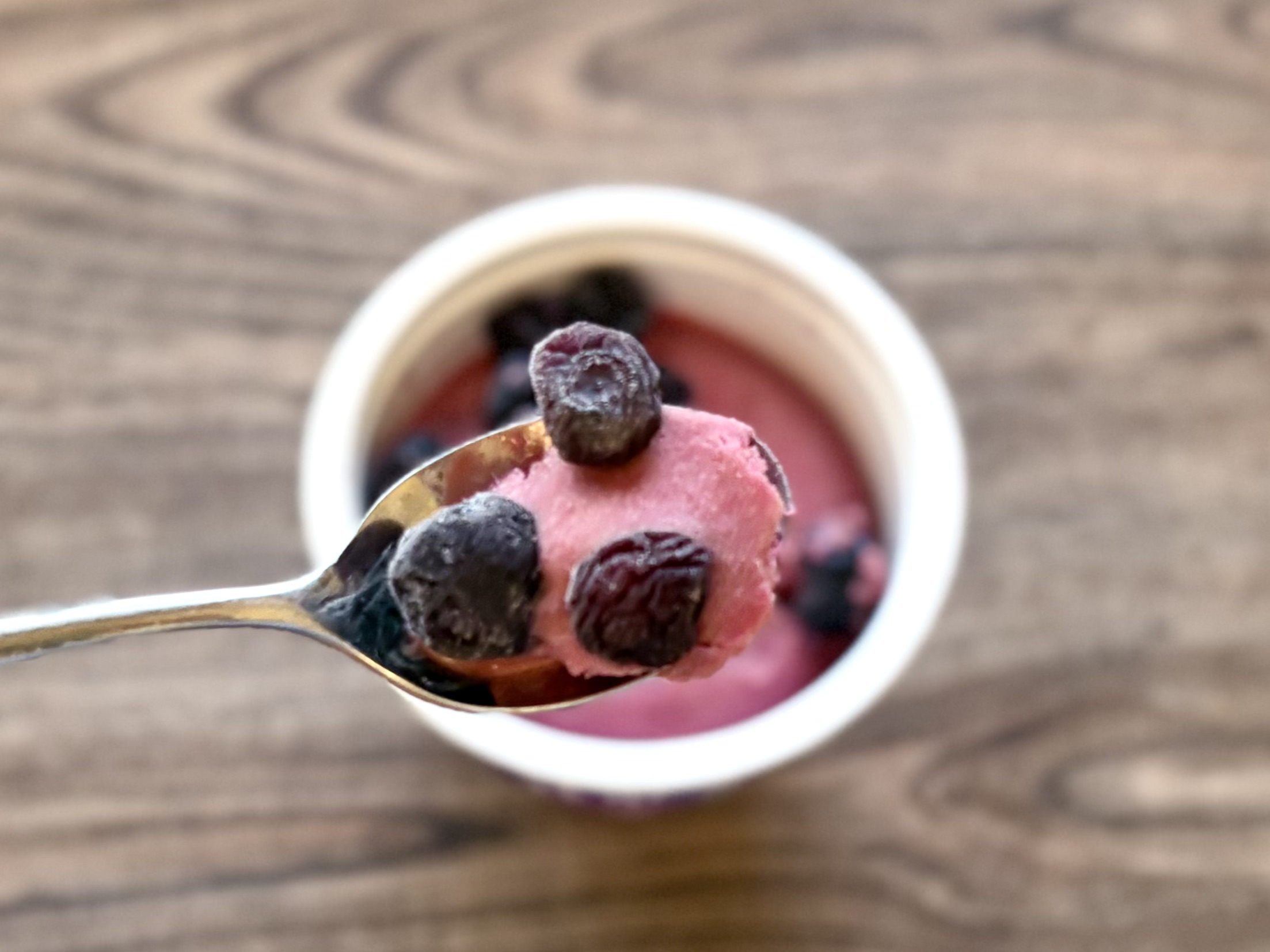 スプーンですくって食べてみると、まろやかなヨーグルトの風味が広がったあとにアサイーっぽさを感じるような、甘酸っぱくてさっぱりとしたおいしさだわ〜!