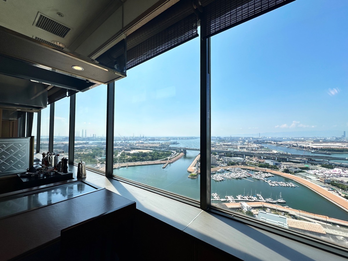 ホテルの25階にある「鉄板焼 なにわ」。店内に足を踏み入れると、大きなガラス窓から堺旧港が美しく見渡せて最っ高の眺め!