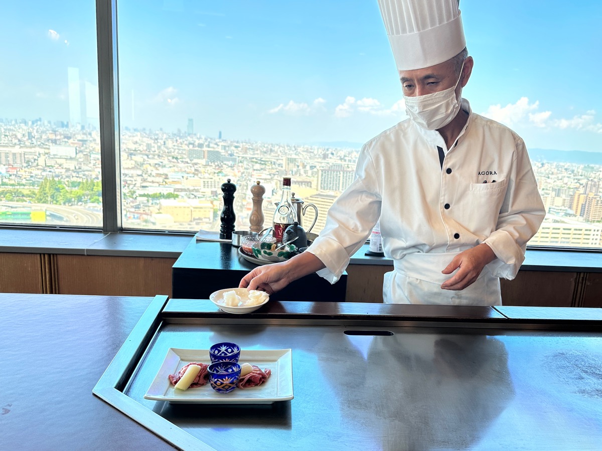 「ホテル アゴーラ リージェンシー 大阪堺」の25階に2025年8月1日オープンした創作フュージョン「鉄板焼 なにわ」では、「大阪ウメビーフ」を堪能できるオープニング記念コースを提供中です。