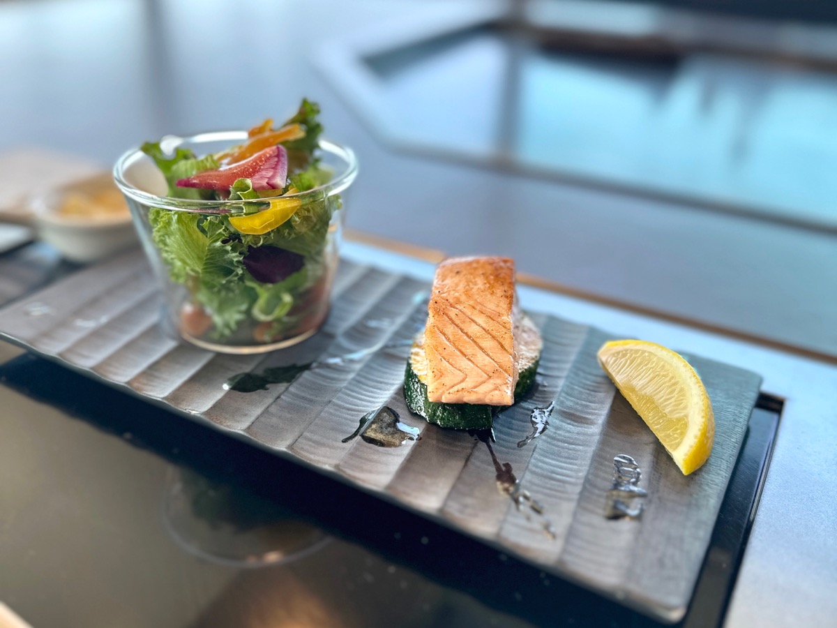 サーモンのソテーはお刺身用のものが贅沢に使われていて、とろけるような美味しさ。自家製タルタルソースを乗せて食べたらお肉食べに来たこと忘れるくらい……。